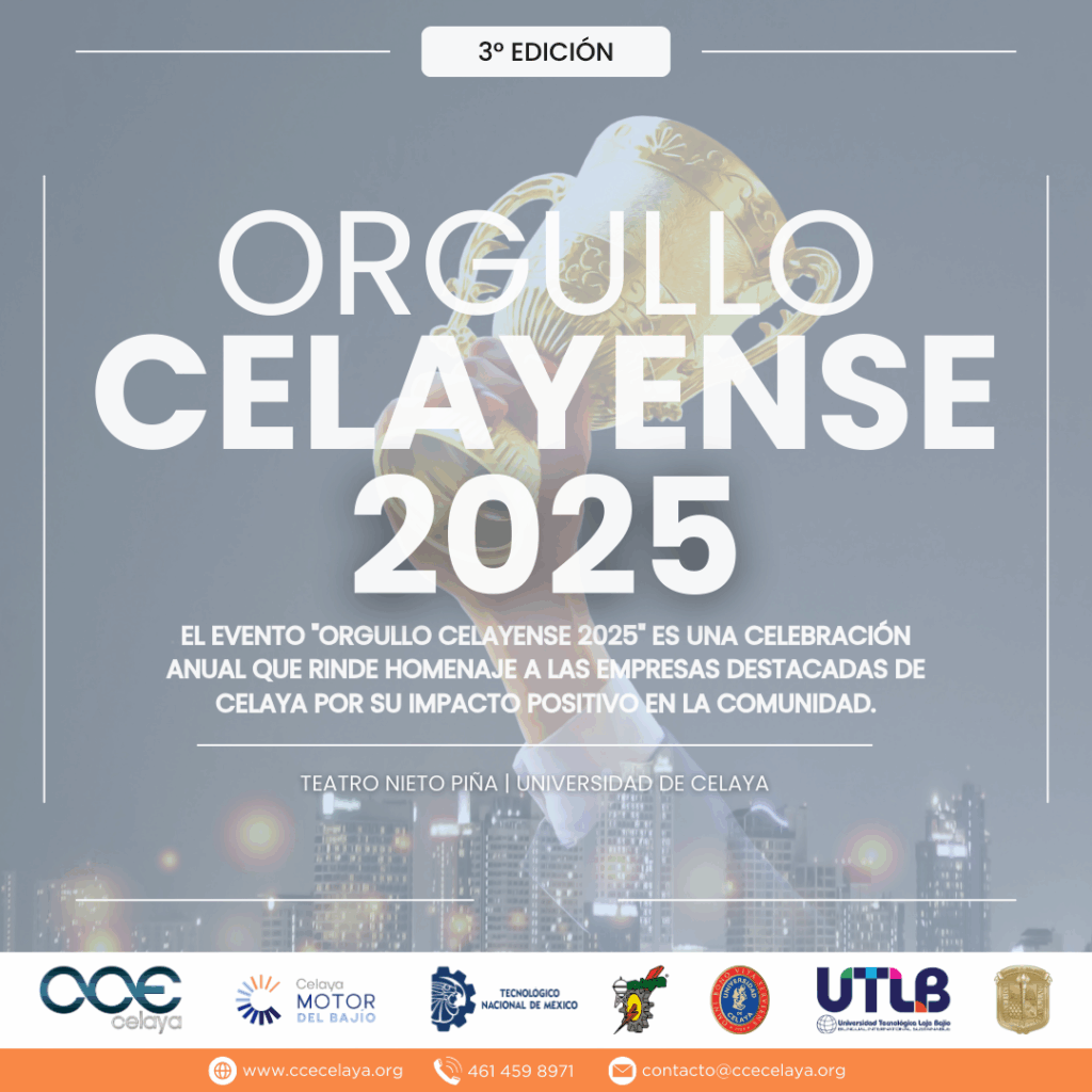 El Consejo Coordinador Empresarial de Celaya invita a toda la comunidad a participar en el Reconocimiento “Orgullo Celayense 2025”, una iniciativa creada para destacar el talento, la dedicación y el impacto positivo de quienes contribuyen al desarrollo de nuestra ciudad.